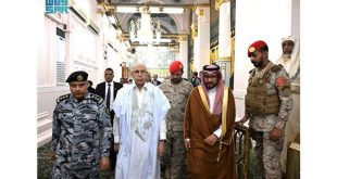 زار فخامة رئيس الجمهورية، السيد محمد ولد الشيخ الغزواني، مساء السبت، المسجد النبوي الشريف، حيث أدى الصلاة في الروضة الشريفة، وتشرف بالسلام على النبي الكريم صلى الله عليه وسلم، وصاحبيه رضوان الله عليهما. وكان في استقباله لدى وصوله المسجد النبوي، نائب الرئيس التنفيذي لهيئة العناية العامة للمسجد الحرام والمسجد النبوي محمد بن سلمان الجهني، وقائد قوة أمن المسجد النبوي، وعدد …