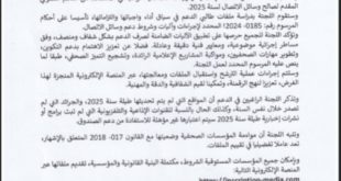 أعلنت اللجنة المكلفة بتسيير وصرف موارد صندوق الدعم العمومي للصحافة اليوم الثلاثاء عن فتح باب الترشح واستقبال ملفات المؤسسات الإعلامية والهيئات الصحفية الراغبة في الاستفادة من الدعم العمومي المقدم لصالح وسائل الاتصال لسنة 2025. وحددت اللجنة مكونات الملف المطلوبة لكل صنف من الأصناف المستهدفة بالدعم، فيما حددت الفترة من الأربعاء 21 يناير 2026، الساعة الثامنة (08:00) صباحا إلى غاية يوم …