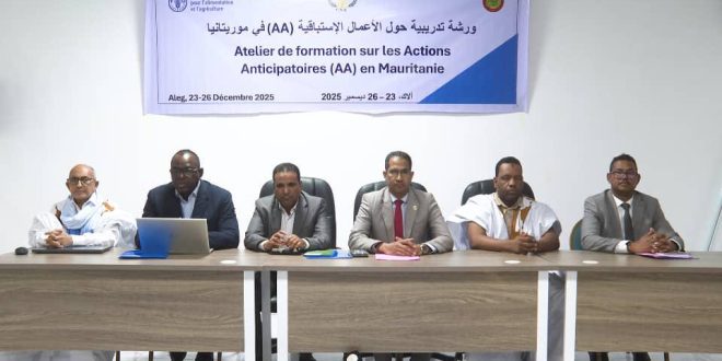 أشرف والي لبراكنة المساعد السيد سيدي محمد ولد عبد الله ولد البوناني، أمس الثلاثاء في ألاك، على افتتاح ورشة تدريبية حول الإجراءات الاستباقية في مجال التصدي للكوارث والتأثيرات السلبية للتغيرات المناخية في موريتانيا، منظمة من طرف مفوضية الأمن الغذائي بالتعاون مع منظمة الأمم المتحدة لأغذية والزراعة العالمية (الفاو).